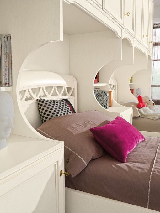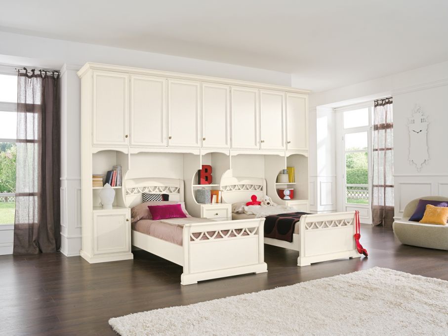 Children (Suite for children), Opera from the Italian manufacturer Favero. The frame is made of wood. Finishing varnish from the company portfolio. Fittings - metal. The model is made with open and zakrytymi sections. The model is made with special niches for single beds. The Cabinet is perfect for storing clothes and books. Color scheme - white.