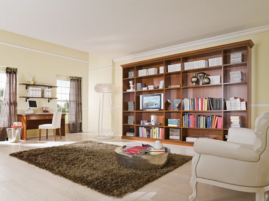 Bookcase Soggorni Opera from the Italian manufacturer Favero. The frame is made of wood. Finishing varnish from the company portfolio. Colors - brown.