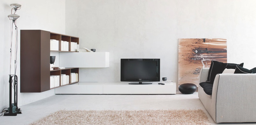 Furniture for TV from the Italian manufacturer Olivieri. The frame is made from solid wood. Possible selection of colors in stock. Consists of hanging shelves and cupboards, there is an option to install the TV. The modern style of execution.