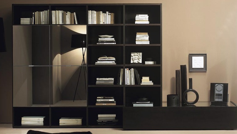 Modular storage system from Italian manufacturer Olivieri. The system carried on the frame of the tree. Consists of open shelves and cabinets. Color in black with mirrored lockers. The modern style of execution.