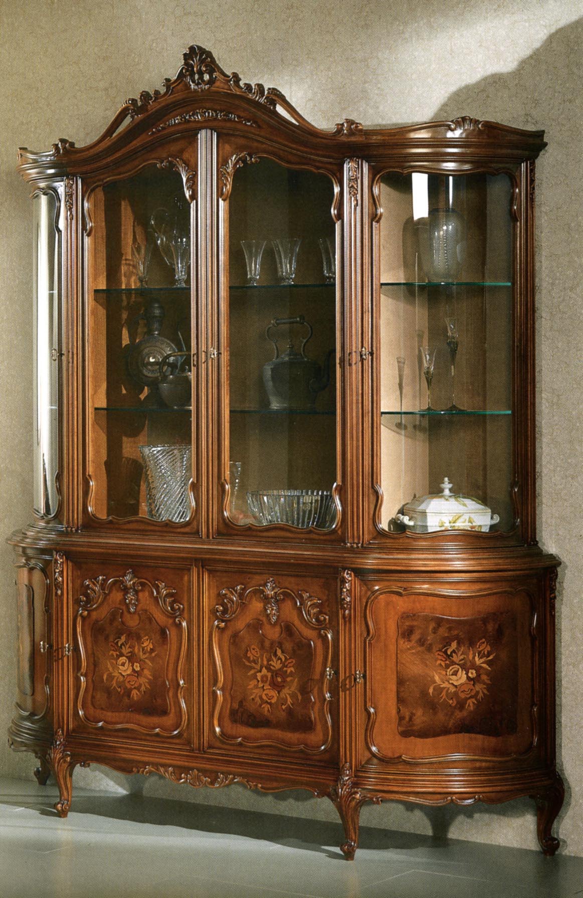 frame: solid wood doors, shelves: glass decor: inlay decor: carved |