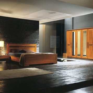 Headsets for bedrooms from Italian manufacturer Dall'agnese. Mounted on a wooden framework. The presented model of a double bed, a wardrobe and bedside cabinets. Color from the manufacturer of natural wood. The modern style of execution.