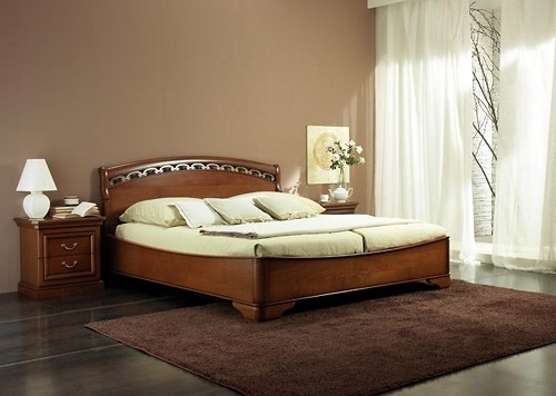 Headsets for bedrooms from Italian manufacturer Dall'agnese. The presented model of a double bed with a low oval headboard on low legs and bedside tables with drawers. Color from the manufacturer of natural wood. The modern style of execution.