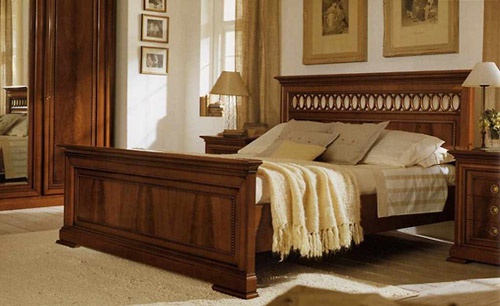 Double bed from Italian manufacturer Dall'agnese. Mounted on a wooden framework. Low headboard with hand-carved. Color from the manufacturer of natural wood. The modern style of execution.