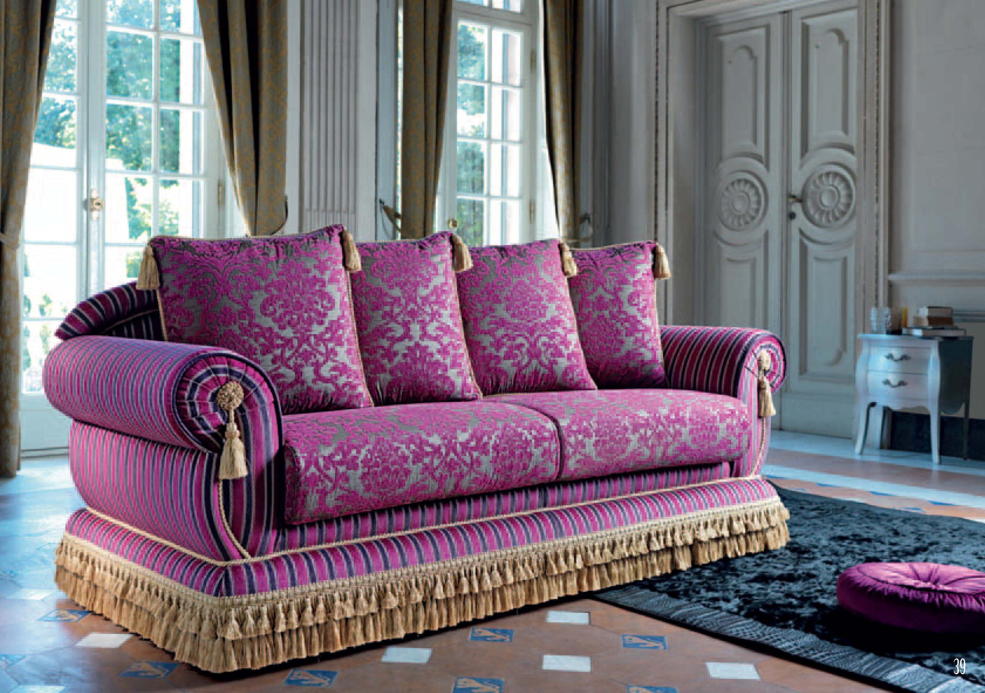 The Classico sofa from Italian manufacturer Domingo Salotti. The frame is made from solid wood, upholstery - textiles from a range of campaigns. The base is hidden a decorative "skirt". This model is ideal in a classic living room style. The design of complementary decorative pillows different shapes. Colours in stock.