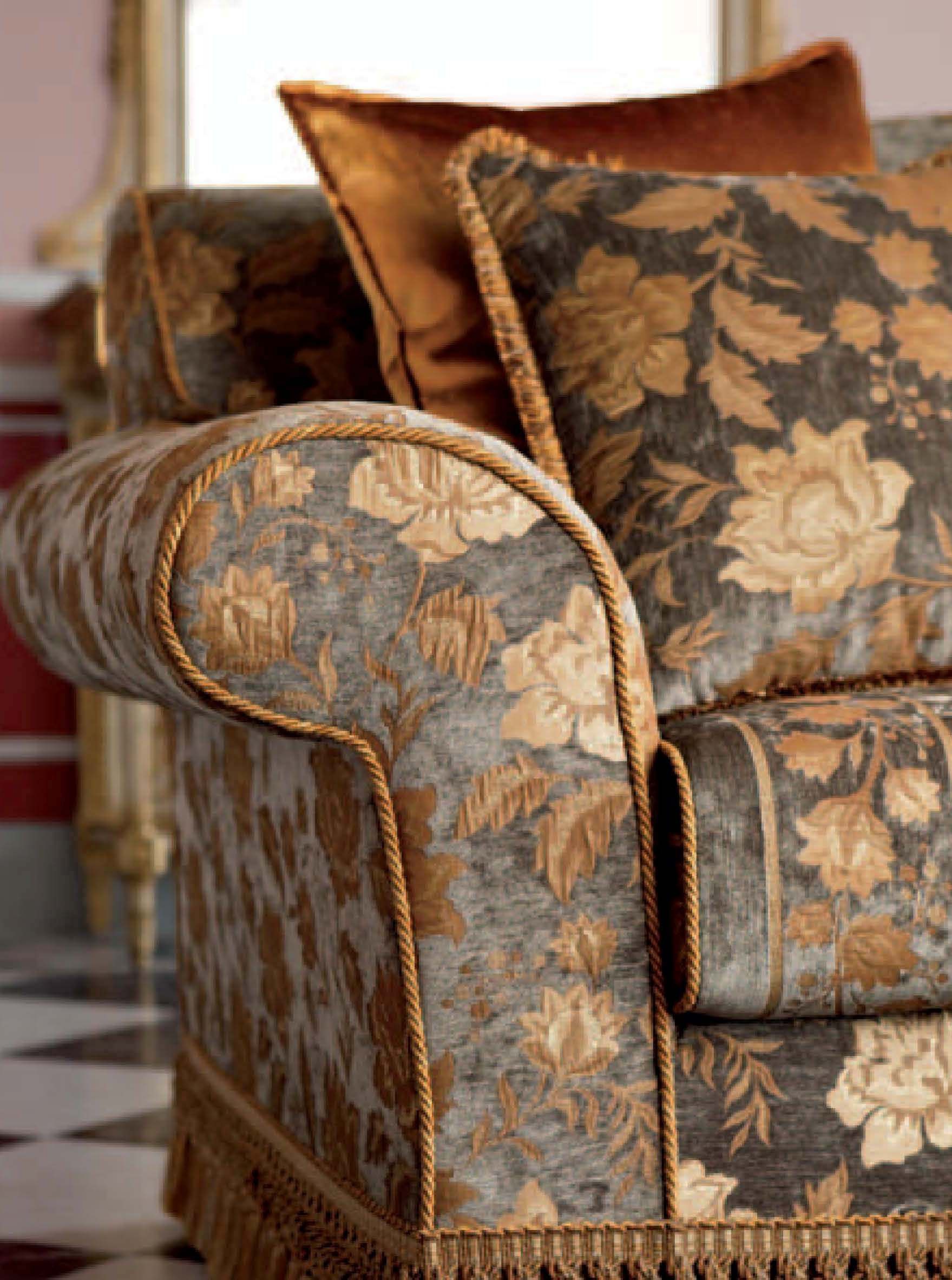 Double or triple the Classico sofa from Italian manufacturer Domingo Salotti. The frame is made from solid wood, upholstery - textiles. The base is hidden a decorative "skirt". Seat and back upholstered. The design will complement the cushions of similar design. Ideal for the living room's classic style. Colours in stock.