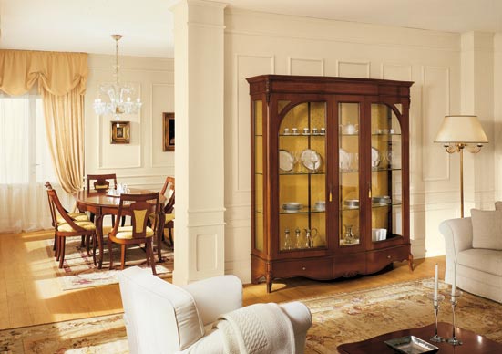 Showcase of the Italian manufacturer Dall'agnese. The model is made from natural wood, and glass doors. From the manufacturer color dark natural wood. Designed to store utensils. A style classic.