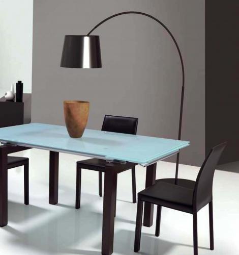 Set for the dining room of the Italian manufacturer Di Lazzaro. The presented model dining table and chairs. Made on wooden frame, glass top. From the manufacturer color is black in combination with blue glass countertops. The modern style of execution.