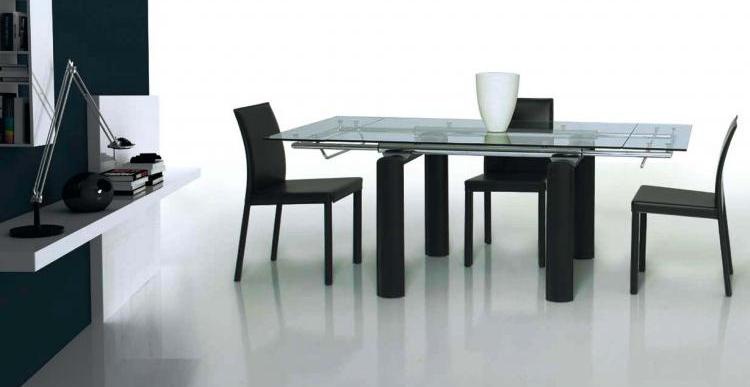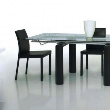 Set for the dining room of the Italian manufacturer Di Lazzaro. The presented model dining table and chairs. The original wood table legs, countertop glass. Chairs with high back. Color in black tone. The modern style of execution.