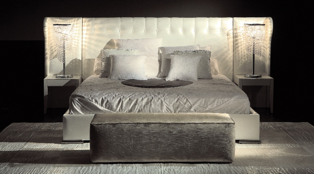 Damasco bedside table - Rugiano. Model on a frame of wood, leather or textiles. Bedside table from solid rosewood or varnished. Tables with back panel complete the bed Damasco, will bring some elegance and functionality.
