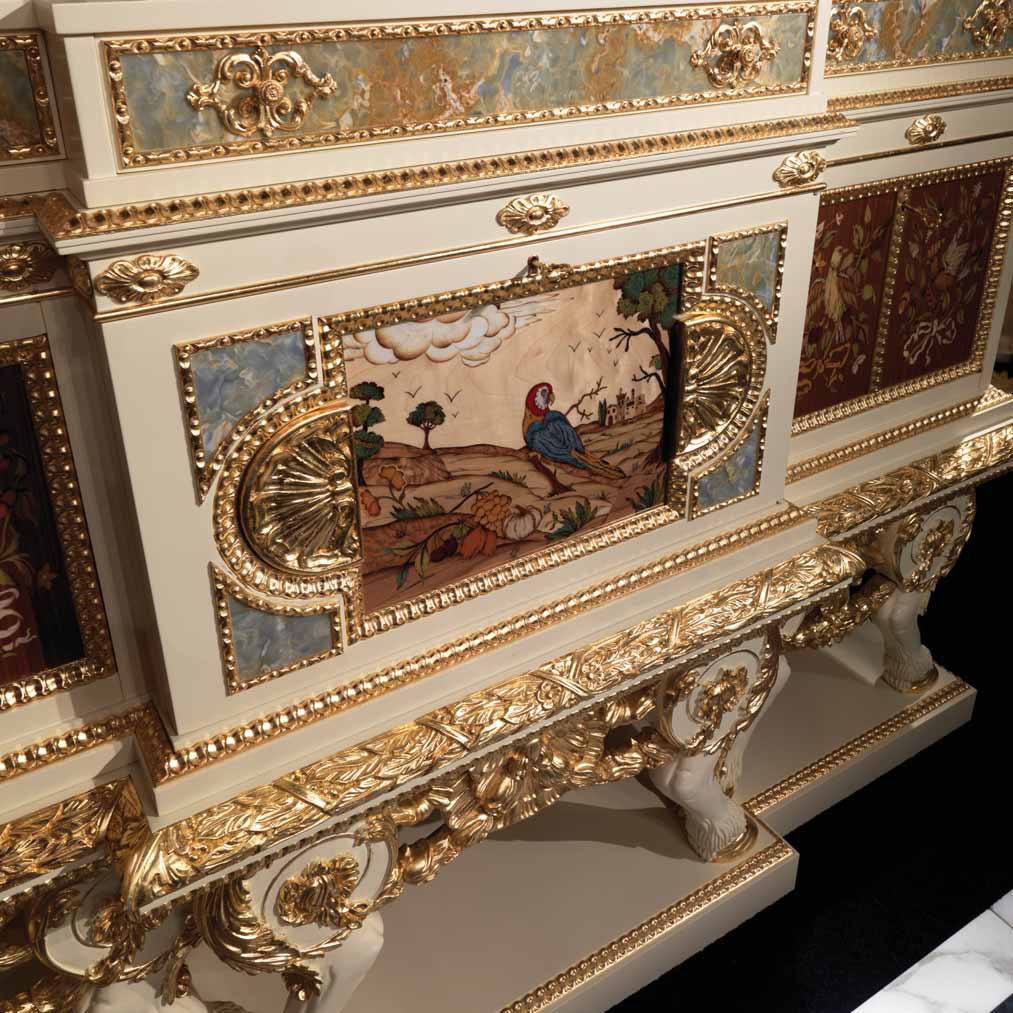 The buffet from the Italian manufacturer Ezio Bellotti. Material - wood. The model is decorated with luxurious decor. The facade, sides and pediment decorated with sculptures, carved details. Includes several closed sections for storage. Ideal for living room or dining room in classic style. Product color brown & white.