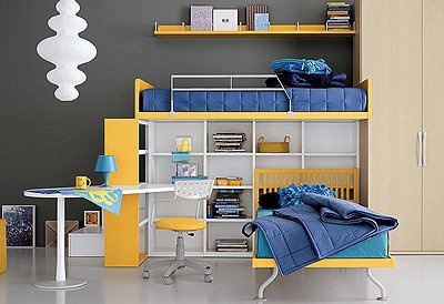 Headsets for children from the Italian manufacturer Battistella. Set includes a single bed, a modular storage system, Desk and swivel chair. The furniture is made of chipboard. The front laminate. The surface is treated with varnish from the range of the campaign. Set a contemporary style. Colours in stock.