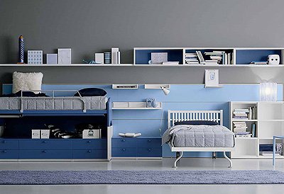 Headsets for children from the Italian manufacturer Battistella. Set includes a single bed and a modular storage system. The furniture is made of chipboard. The front laminate. The surface is treated with varnish from the range of the campaign. Set a contemporary style. Colors: white, blue, blue.
