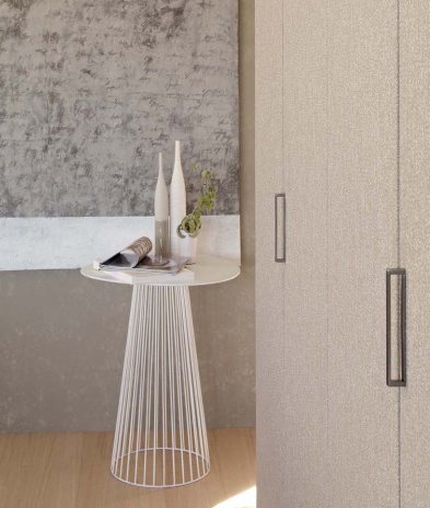 Coffee table from the Italian manufacturer Flou. The base is made from metal tubes. Worktop - wood. Finishing varnish from the company portfolio. The model is made in modern style. Color scheme - white.