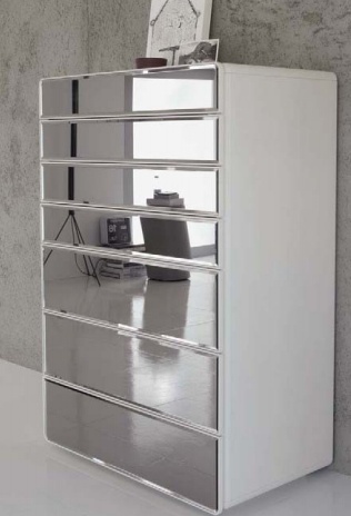 Dresser-chest of drawers from Italian manufacturer Flou. The frame is made from solid oak. The facades of drawers - combination of wood surfaces and inlays of decorative mirrors. A wonderful choice for the bedroom in modern style. Color scheme - white.