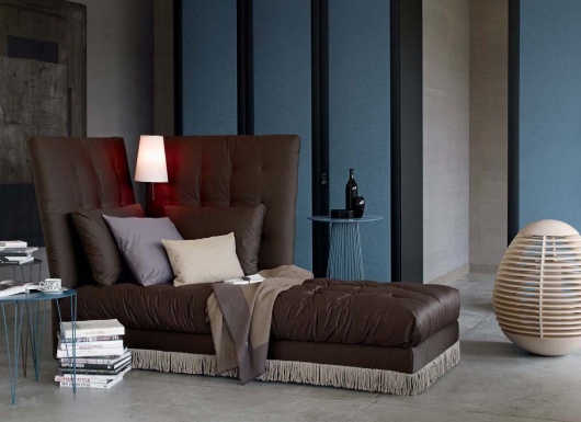The couch from the Italian manufacturer Flou. Upholstery leather from a range of campaigns. The model is made with a very high headboard. Headboard embellished with stitch. The legs are made of metal. The model will perfectly complement the modern interior living room. Colors - brown.