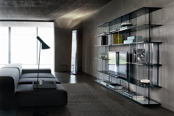 Rack Inori from the Italian manufacturer Fiam. The frame is made of painted steel. Shelves of glass and painted steel. The style is modern. Colors, clear and black. The ease and grace of a model decorates your living room.