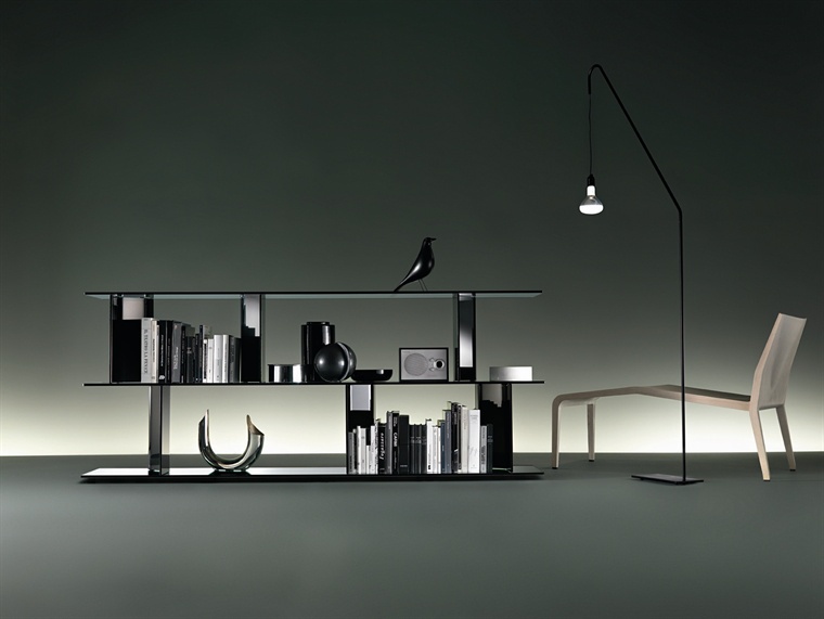 Bookcase Inori from the Italian manufacturer Fiam. The model is made of tempered painted glass. Colours in stock. The style is modern.