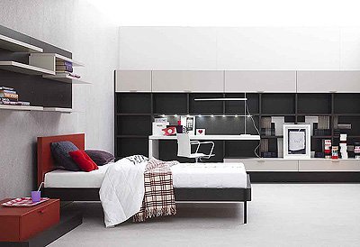 Headsets for children from the Italian manufacturer Battistella. Set includes a single bed, a modular storage system with built-in lighting and a nightstand. The furniture is made of chipboard. The front laminate. The surface is treated with varnish from the range of the campaign. Set a contemporary style. Colors: white, red, black.