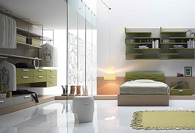 Headsets for children from the Italian manufacturer Battistella. Set includes single bed, bedside tables, modular storage and wardrobe. The furniture is made of chipboard. The front laminate. The surface is treated with varnish from the range of the campaign. Set a contemporary style. Colors: natural wood color, green.