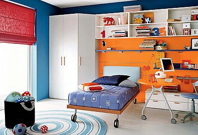 Headsets for children from the Italian manufacturer Battistella. Set includes twin trundle bed, wardrobe, modular storage system and a Desk. The furniture is made of chipboard. The front laminate. The surface is treated with varnish from the range of the campaign. Set a contemporary style. Colours in stock.