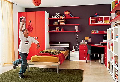 Headsets for children from the Italian manufacturer Battistella. Set includes twin bed, computer corner Desk, wardrobe, shelving and modular shelving system. The furniture is made of chipboard. The front laminate. The surface is treated with varnish from the range of the campaign. Set a contemporary style. Colors: white, red.