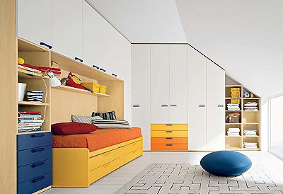 Headsets for children from the Italian manufacturer Battistella. Set includes twin bed with drawers for storage and a module for clothes, shoes and books. The furniture is made of chipboard. The front laminate. The surface is treated with varnish from the range of the campaign. Set a contemporary style. Colours in stock.
