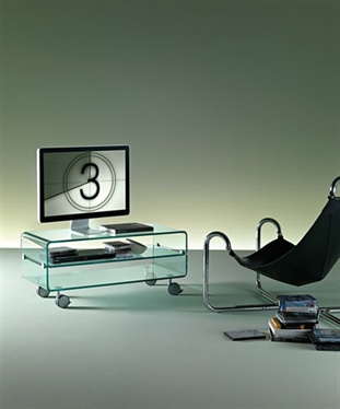 Cabinet for TV C&C Large by Italian manufacturer Faim. The frame is made of transparent glass of high quality. A model with wheels.