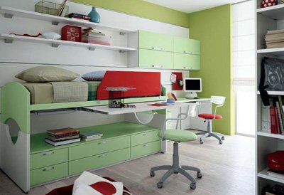 Headsets for children from the Italian manufacturer Battistella. Set includes bunk bed, Desk, chair, modular storage and shelving. The furniture is made of chipboard. The front laminate. The surface is treated with varnish from the range of the campaign. Set a contemporary style. Colours in stock.