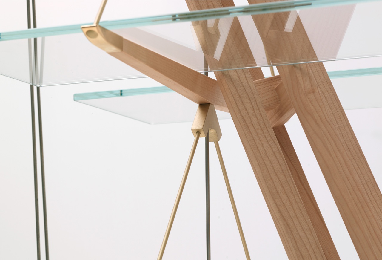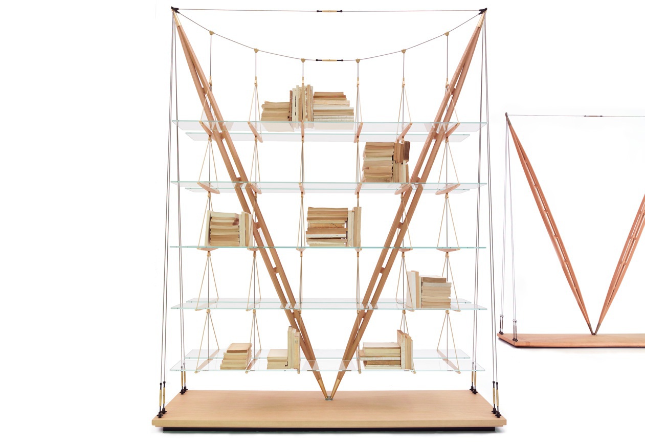 838 VELIERO bookcase from the Italian manufacturer Cassina. Designer Franco Albini. The frame is made of natural wood, shelves - glass. The model will decorate the interior design. Colors: transparent, natural color of the wood.