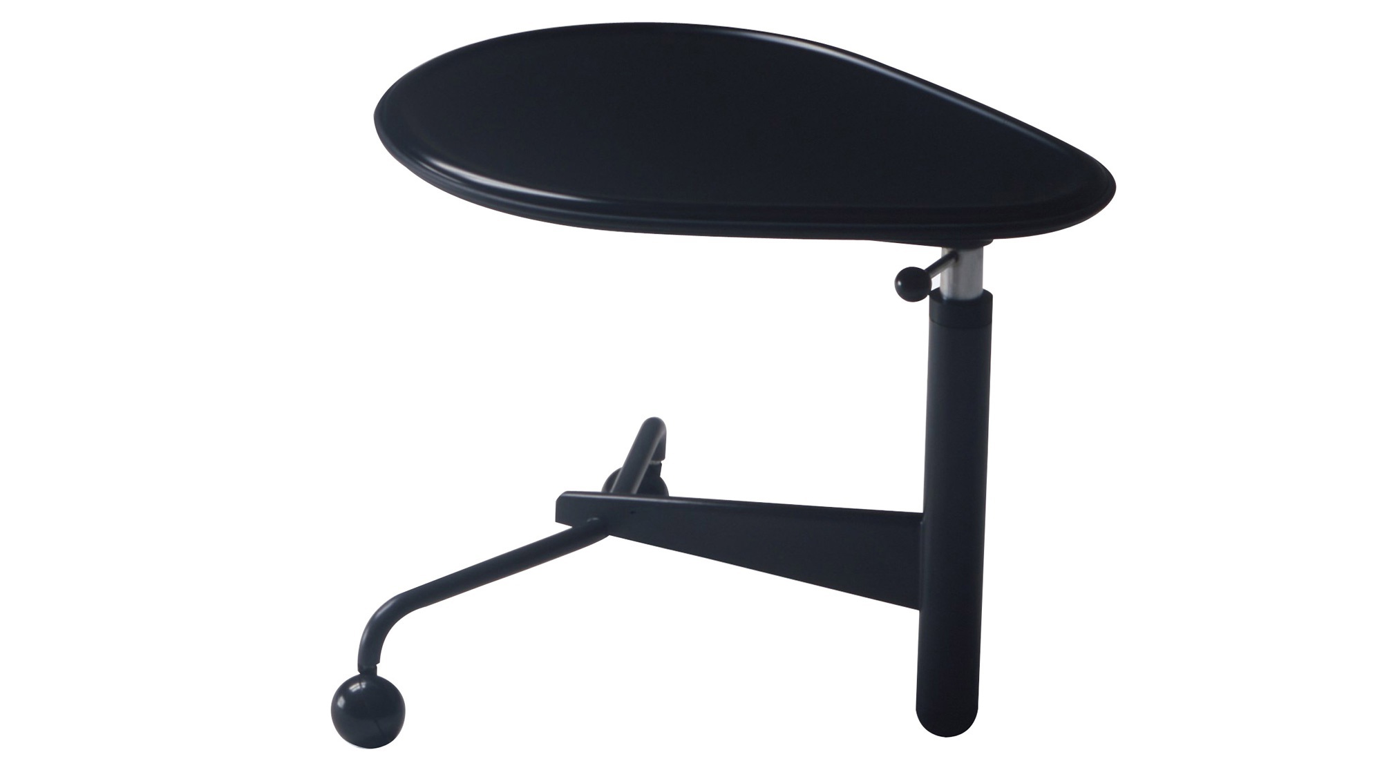 Rotary table-transformer on wheels 112 Kick from the Italian manufacturer Cassina. Model with adjustable height of the top. The top is made from glossy lacquered wood. Base - steel. The model is designed for an interior designer style. Colours in stock.