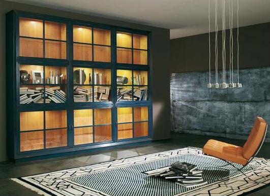 The bookcase with internal lighting from the Italian producer Giorgio Piotto. The frame is made from solid wood. Model nine door, with internal lighting. Door glass. The rack is painted in blue color, made in a modern style.