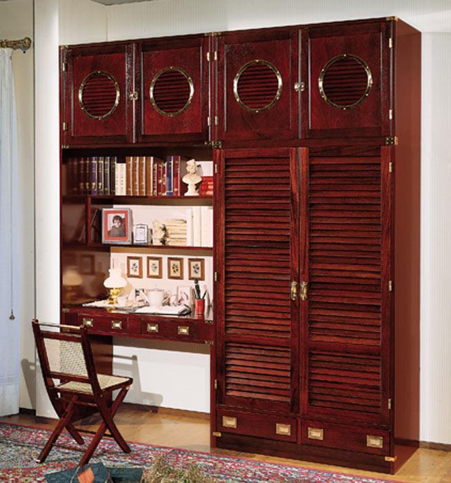 Cabinet with built-in Desk Vecchia Maria from the Italian manufacturer Caroti. The model is made of wood finish to choose from a range of the factory. The top element of the Cabinet with 2 doors with window, built-in Desk with two drawers, shelves complement the design. The style is classic.