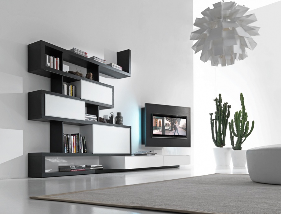 Furniture for TV from Fimar Italian manufacturer. The frame is made from solid wood. The finishing - varnish. The model contains many shelves. Colors - beige and black. Sections - open and closed. The Cabinet is designed in modern style.