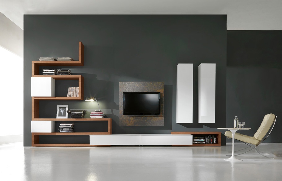 Furniture for TV, the Italian manufacturer Fimar. The frame is made from solid wood. The finishing - varnish. The model contains many shelves. Sections - open and closed. The model contains a special section for TV and wall cabinets. The shelf is made in the form of a maze. Colors - white and brown.