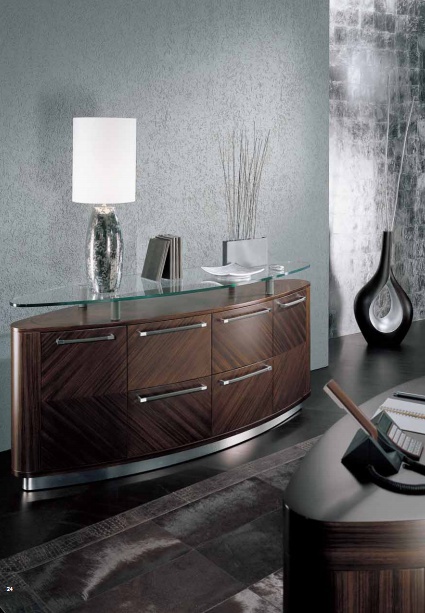 A chest of drawers from the Italian producer Giorgio Collection. The body is made of solid wood. The finish offers a glossy varnish. The base and handles of chrome-plated metal. Upper top made of transparent glass.