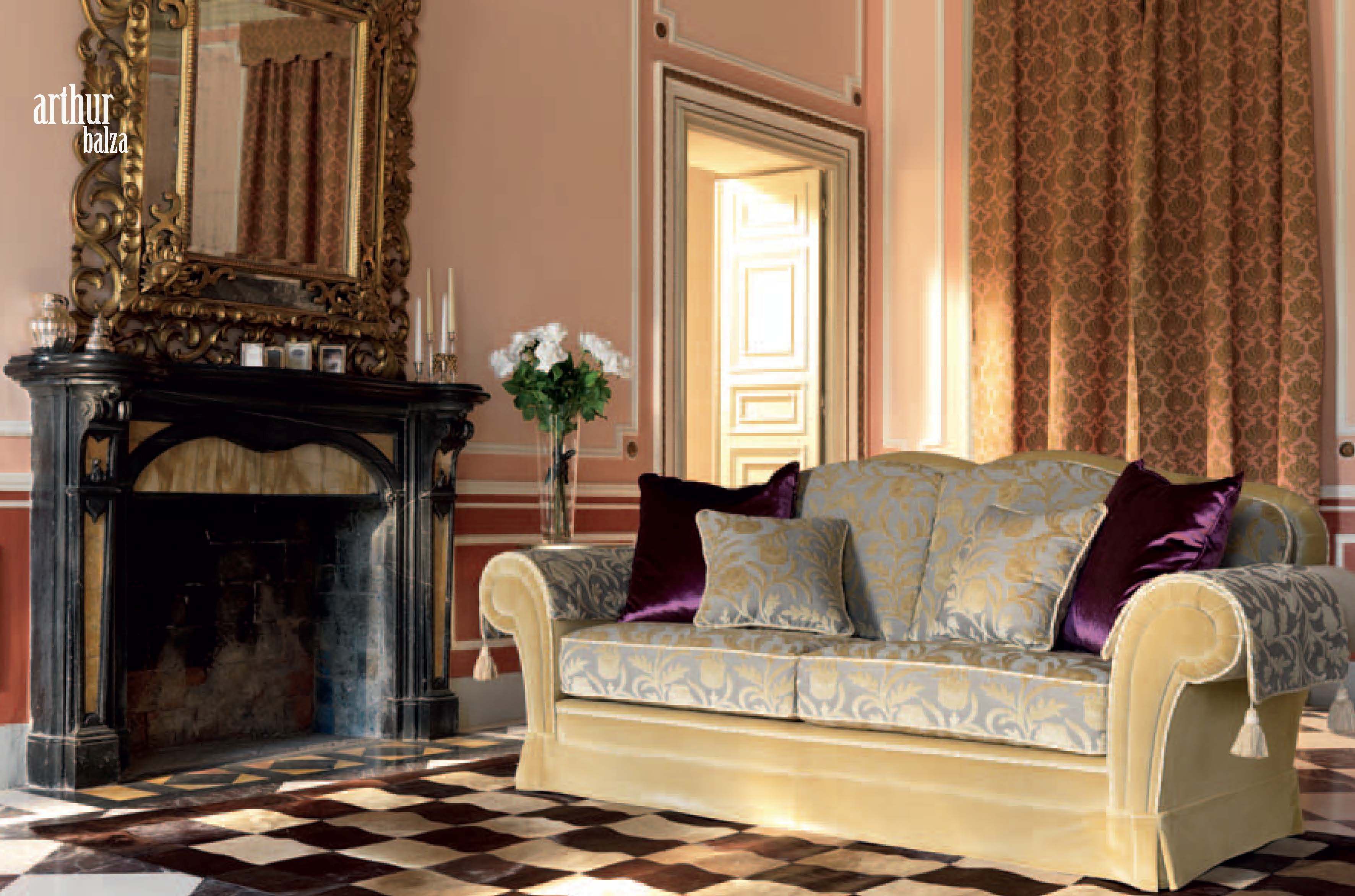 Two - three seater sofa Classico from the Italian manufacturer Domingo Salotti. The frame is made from solid wood, upholstery - cloth from a range of campaigns. The base is hidden a decorative "skirt". The seats are removable. The model is designed for the living room in a classic style. The design of complementary decorative pillows. Colours in stock.