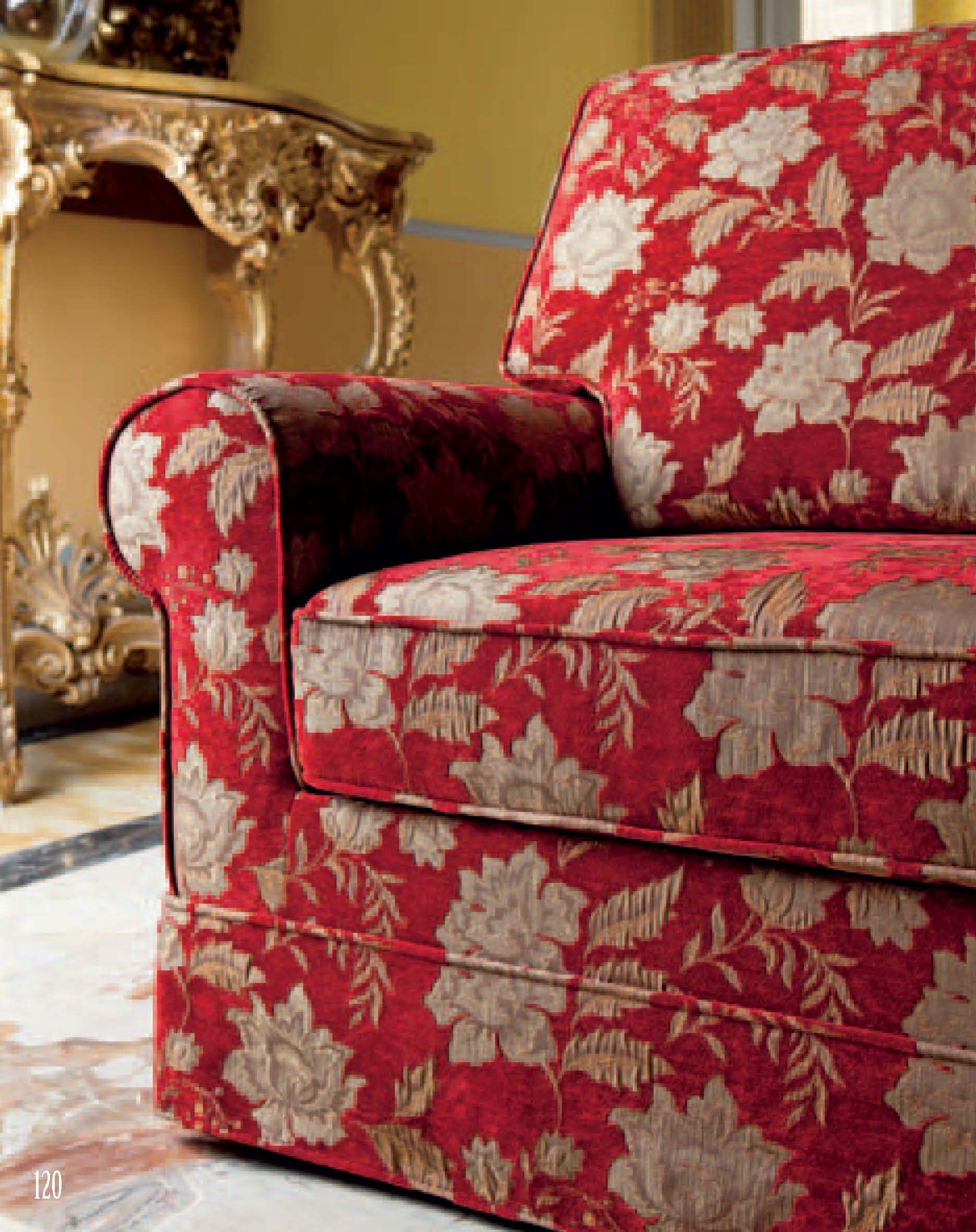 Two - three seater sofa Classico from the Italian manufacturer Domingo Salotti. The frame is made from solid wood, upholstery - textiles from a range of campaigns. The seats are removable. The base is hidden a decorative "skirt". The model is designed for the living room in a classic style. Colours in stock.