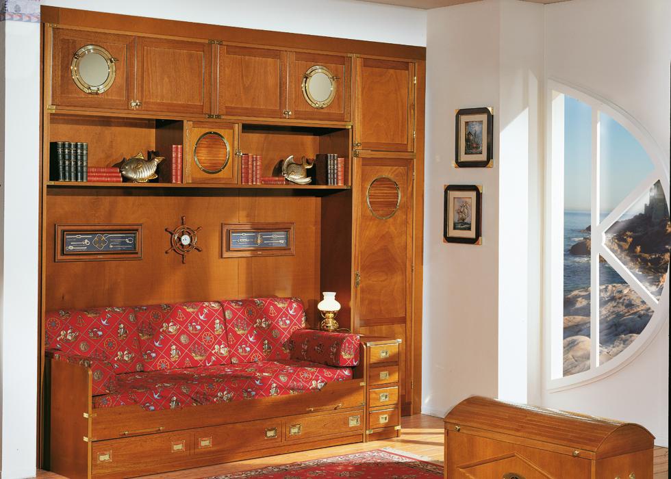 Set Maria Vecchia from the Italian manufacturer Caroti. Set is made of wood finish to choose from the catalog factory. The presented model is a Cabinet, open and closed compartments for storage, a single bed and additional pull-out bed. The design complements the chest. A great option for decorating teen rooms.