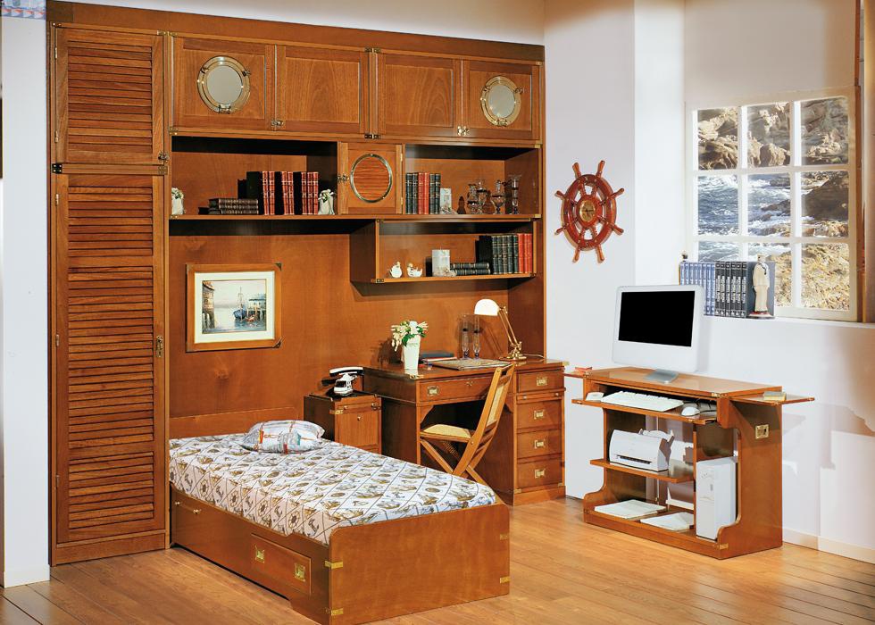 Set Maria Vecchia from the Italian manufacturer Caroti. The presented model a wardrobe, twin beds with drawers, bedside tables, Desk and computer Desk. Material - wood, finish to be selected from the company directory, fittings made of brass. Functional solution for classic teen room.