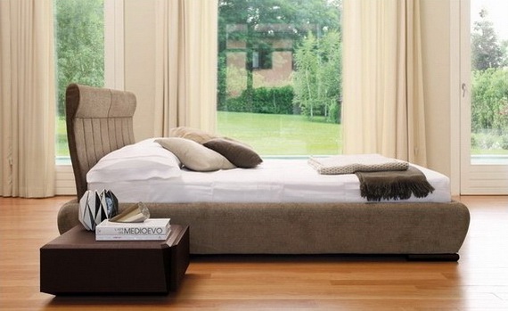 Double bed Bebop & Prismiid from Italian manufacturer La Falegnami. Model with high headboard. The frame is completely covered with textile. A wide range of color options. Low legs are made of solid wood. Made in a modern style.