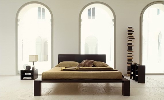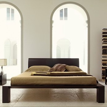 Double bed Blade from Italian manufacturer La Falegnami. The model with a rigid backrest. The frame and legs are made of solid wood. Upholstery leather in black or brown. In addition offered bedside tables of similar design.
