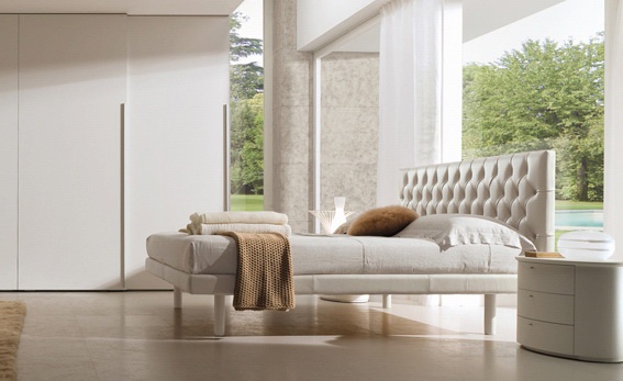 Double bed Havana & ellisse from Italian manufacturer La Falegnami. The frame and legs are made of solid wood. The surface is treated by high gloss or Matt lacquer. The headboard is covered with leather. The ornament serves as a decorative stitch-Capito.