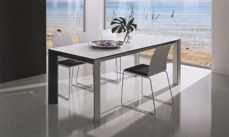Dining table from Italian manufacturer La Primavera. The model is made in a modern style. The table top is rectangular. Legs are high. Material - solid wood. The finish offers high gloss lacquered white or black.