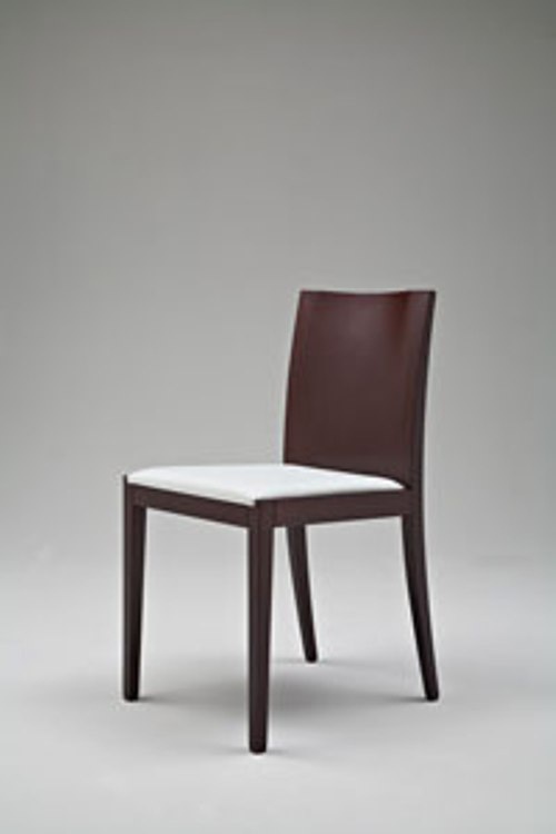 VARSAVIA chair from the Italian manufacturer La Primavera. The frame and legs are made of solid wood. The surface can be high gloss or Matt lacquer. The seat is soft. Leather upholstery in white. The model is made in a modern style.