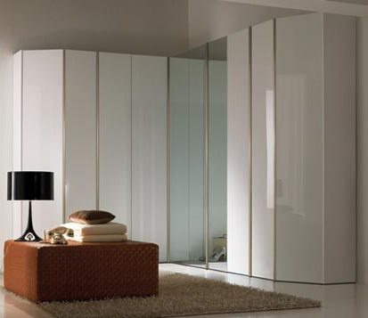 Anteprima wardrobe from the Italian manufacturer Frighetto. The frame is made from veneer wood, thickness 22 mm, surface covered with melamina, varnished. Wooden doors, glass or mirror. A simple door, sliding or folding. Shelves made of veneer wood thickness of 25 mm. metal Hardware, decorative, from the company portfolio. The model is presented in white and black color, made in a modern style.