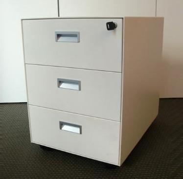 Cabinet Handle from the Italian manufacturer Frighetto. The frame is made from aluminium. Model on wheels, with three drawers. The top drawer is lockable with a key. Nightstand comes in white color. The model is executed in modern style.