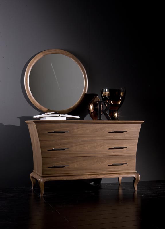 A chest of drawers from Italian manufacturer L'officina. Includes three drawers. Body and legs made of solid wood. Finish option to choose from a collection company. Accessories metal.