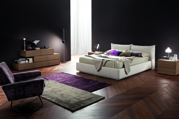 Set for bedroom Bubble from the Italian manufacturer Vittoria. Set includes: double bed with soft and high ishole, chest of drawers and bedside Cabinet. The frames are made of wood. Finishing varnish from the company portfolio. The dresser contains five large drawers and an interesting shelf, nightstand - 2 drawer. Upholstery - leather or textile from the catalog. Colors - white and brown. The model is made in modern style.