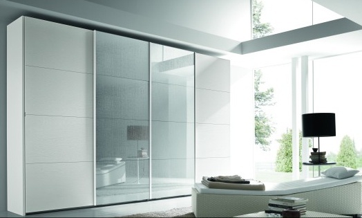 Wardrobe Mania Incisa from the Italian manufacturer Vittoria. The frame is made of wood. Finish - gloss lacquer from the company portfolio. Color scheme - white. The doors are sliding. The Central door is made of durable frosted glass. The Cabinet will perfectly complement the modern interiors.